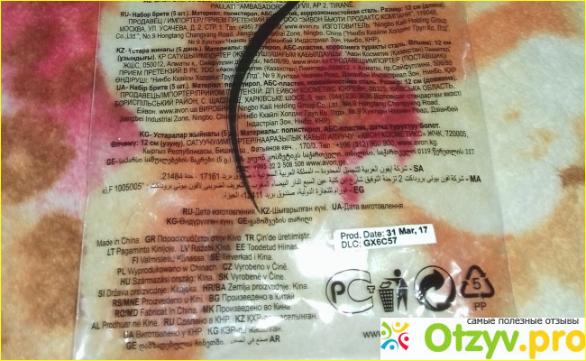 Эти станки запаковываются в полиэтиленовый пакет, очень прочный, он имеет прозрачный оттенок, станки просматриваются хорошо в нем. На одной стороне пачки нанесено название. А на обратной стороне много-много черных надписей, какие-то артикулы, в нижней части упаковки можно найти состав станков, которых включает в себя полистирол, абс-пластик и коррозионостойкую сталь. А изготовлены данные станки в Китае.