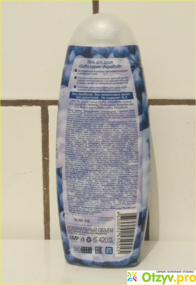 Гель для душа не содержит парабенов. Без силиконовых масел. Без красителей. И без очень вредного компонента - SLS.