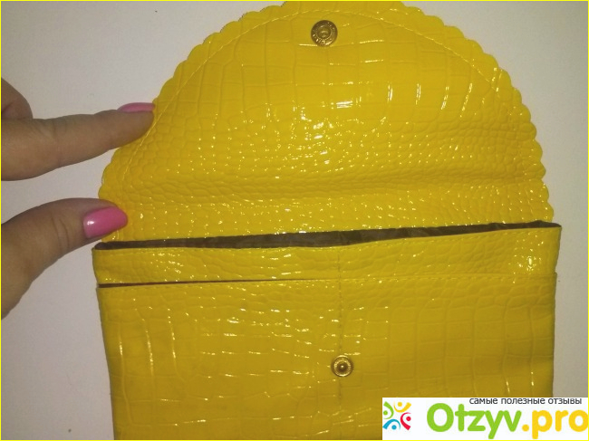 Итак, кошелек прямоугольной формы и ярко желтого цвета.