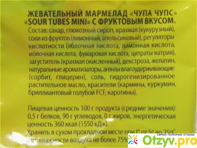 Состав мармелада указан на оборотной стороне упаковки и ничего особо страшного не содержит.