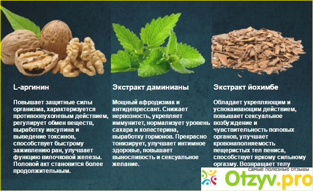 Экстракты растений, которые улучшают чувствительность полового органа, и дарят яркие и непередаваемые ощущения. Также для женщин этот порошок хорош тем, что он помогает вырабатывать мужские, и женские гормоны в организме, привести сахар в норму, и нормализует холестерин в крови. И самым главным его свойством, которое обрадует всех мужчин, является продление полового акта между партнёрами, и защита всего организма от опухолей.
