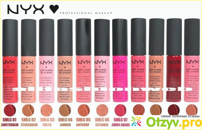 NYX этодостаточно популярный сегодня бренд косметики, который выпускает невероятно качественную продукцию. Этот бренд активно используется профессионалами и является любимым у многих женщин. Что касается помад, то они подобны обычному блеску и содержатся в подобных тюбиках. От этого онии называются жидкими, хотя на губах проявляют себя совершенно иначе. Матовая помада - суфле обладает черезвычайной стойкостью. Никакой жидкости, как только наносишь помаду на губы, она мгновенно подсыхает, создавая матовый эффект. Но губы момада не сушит и это ее уникльнсть, губы выглядят сухими, накрашенными и при этом они не теряют влагу.