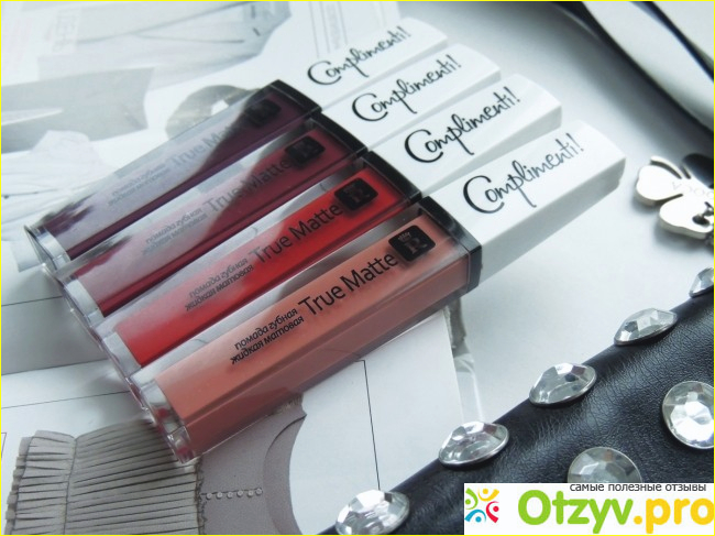 К сожалению, именно такой в продаже не оказалось, зато были жидкие матовые True Matt Compliment Relouis. Поскольку я являюсь поклонницей красных помад, я выбрала оттенок № 02. Всего в палитре их девять.