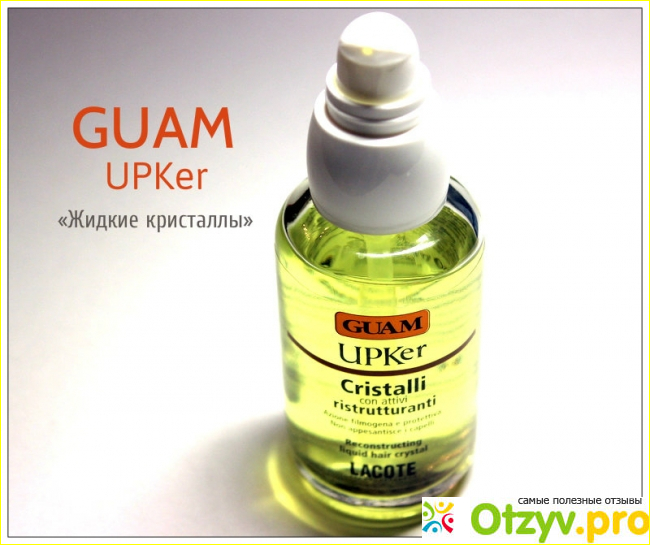 Guam UPKer Crystals with Restructuring Principles. Это одно из моих любимых средств, оно мне идеально подходит, пользуюсь им регулярно. Сравнивала с другими средствами, но это остается одним из лучших, учитывая что у меня волосы окрашенные, то после масла выглядят очень эффектно, здоровыми и блестящими.