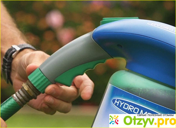 В канистре смешивают компоненты. Чтобы максимально рассеять состав, к распылителю сверху прикрепляют шланг для полива. Управляют процессом специальным рычагом на крышке. Достаточно повернуть его на полную и включить воду в шланге.