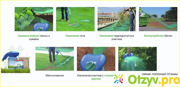 «Рекомендуем новый вариант посадки растений – Жидкий газон. Делали в загородном доме поле для волейбола. Получилось здорово. Распылили, а когда в следующий раз приехали, уже было все покрыто зеленью. Причем довольно густой! », - Егор.