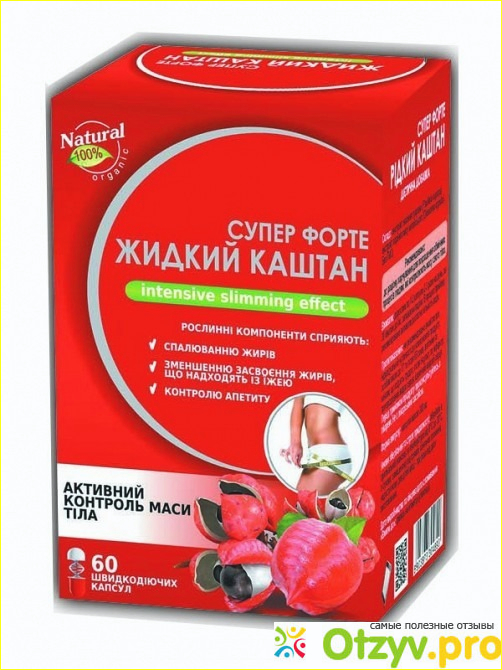 Это инновационное средство предназначенное специально для того, чтобы в короткие сроки избавить человека от лишних килограмм. Реализуется средство в удобной упаковке, герметично запакованный и закрытый. Внутри упаковки специальный порошок, который предварительно перед приемом нужно будет приготовить. Данное средство активно разбивает жировые отложения совершенно на любых участках тела, он выводит из внутренних органов отложения жиров, выводит из организма жидкость которая лишняя. Кроме того, жидкий каштан помогает нормализовать уровень холестерина в крови, помогает нормализовать метаболизм, налаживает пищеварительную систему. Жидкий Каштан подавляет аппетит и имеет мочегонный эффект, за счёт чего человек просто перестает переедать, а лишняя жидкость из организма выходит. В следствии, жир не успевает накапливаться, а тот жир который уже присутствует на теле быстро и эффективно исчезают.