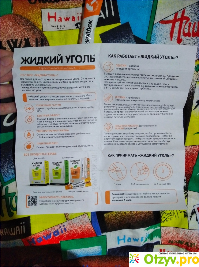 Единственное, что меня довольно напрягало, так это количество таблеток, которые нужно было принимать за один раз, а когда беспокоят симптомы интоксикации, то сделать это не так уж и легко. Как альтернатива Активированному углю, был Энтеросгель, помогал он мне не так хорошо, как другим, но у каждого организм индивидуален. Не так давно я узнала о новинке, а именно о том, что вышел новый препарат, получивший название Жидкий уголь и меня это очень заинтересовало. Зная что в те минуты, когда начинают беспокоить неприятные симптомы мне не до аптеки, я решила наперёд приобрести препарат и для этого я отравилась в аптеку. Как оказалось, так в аптеке был не только Жидкий уголь для взрослых, но и для деток, я приобрела два вида, так как у меня есть дети и под рукой должно всегда быть такое средство для них.