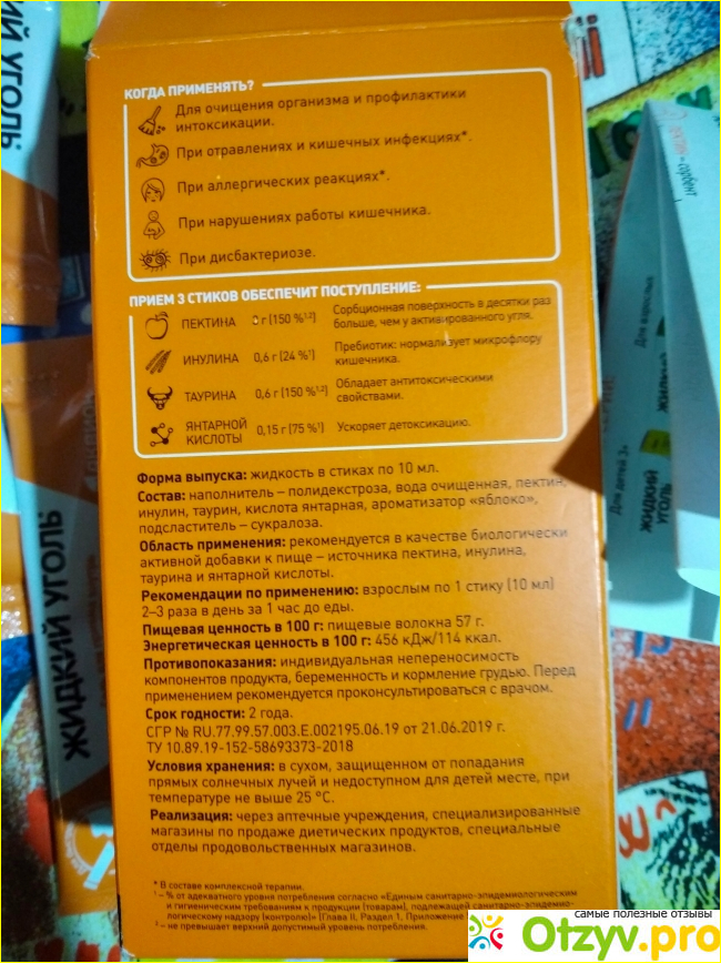 Дома мне было интересно, в каком виде этот препарат, но самое интересное, что он не в жидкой форме, а в виде порошка, что станет жидким только после разведения его водой. Цвет порошка - белый, находится он внутри саше-пакетиков, которых в упаковке 10 штук. На самом деле это природный сорбент, который никаким негативным образом не сможет навредить. Так вот в составе можно найти таурин, инулин, пектин, янтарную кислоту. Цена конечно же не маленькая, тем более учитывая степень интоксикации или сбои в работе кишечника, пищеварения. Мне повезло найти Жидкий уголь в аптеке нашего города, но не везде он есть и не все о нём знают, так как это новинка. На этот раз я не ждала неприятностей со стороны своего организма и решила просто его почистить с помощью Жидкого угля. Для этого пришлось полностью пройти курс, который не ограничился одной упаковкой, пришлось докупать вторую, а с этим возникли трудности, так как пришлось в этот раз ехать в другой конец города. Принимала же я его так: брала 100 мл горячей воды (но не кипятка), разводила в ней содержимое одного пакетика, затем принимала во время еды и так два раза в день, одной упаковки хватило на 5 дней. Сам же курс приёма должен составлять 7 - 14 дней, я вложилась в 10 дней, потому как продолжить приём его дальше не видела необходимым, да и денег на него не было.