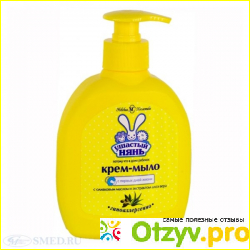Жидкое крем - мыло с оливковым маслом и экстрактом алоэ вера для детей выпускается под маркой "Ушастый нянь" Российским производителем "Невская косметика". Изготовлено оно согласно ГОСТ - таким средствам я доверяю. Флакон имеет достаточно большой объем - в 300 мл.