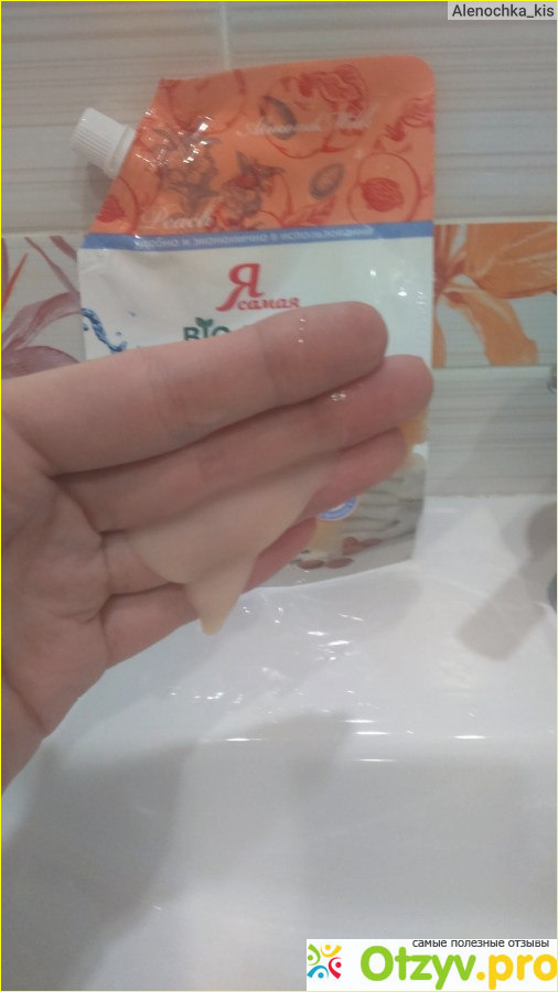 В итоге мы получаем недорогое жидкое мыло с приятным нежным ароматом с экономичной упаковкой, которое в последствии пользователи перельют во флакон, но с неэкономным расходом мыла.