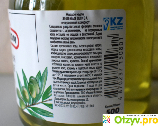 Это жидкое мыло я купила лишь из-за «зелёной оливы». Думала, что в составе обязательно будет или оливковое масло, или какая-нибудь вытяжка. Всё-таки олива славится своими полезными свойствами.