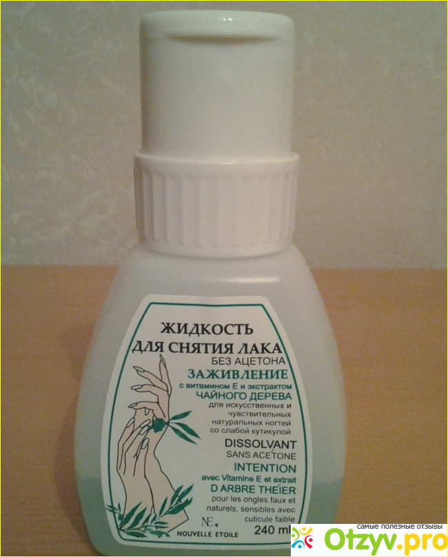 Хорошо бы, конечно, если бы ещё и лак удаляла хорошо. Я нашла именно такую жидкость, отвечающую всем требованиям. Это баночка объемом 240 мл. На баночке вы увидите надпись:"Заживление. С витамином Е и экстрактом чайного дерева". Это жидкость без ацетона. Светло- зеленого цвета, запах не слишкой резкий, не удушливый, а какой- то сладковатый, хоть и немного химический. Данное средство великолепно удаляет любой лак с ногтей, а главное- бережно и нежно. Ногти не слоятся, не портятся. Я просто в восторге от упаковки, которая продумана до мелочей. Открываете крышечку, и видите 3 маленькие дырочки. Прикладываем ватный диск. Нажимаем, и всё! Диск достаточно пропитан, осталось приложить его поочередно к ногтям и стереть лак. При необходимости смачиваем диск ещё раз. Такой удобный дозатор- просто песня! Позволяет избежать лишнего расхода жидкости для снятия. Обязательно куплю ещё это средство, когда закончится.