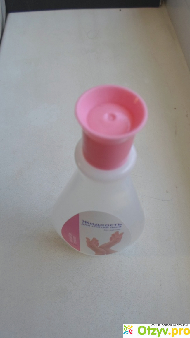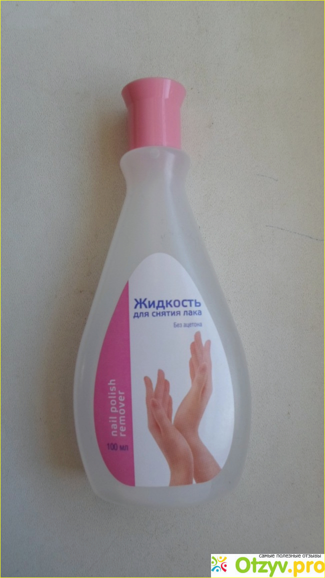 Жидкость для снятия лака с ногтей без ацетона - это раствор этилацетата и бутилацетата разведённый водой и собранный в парфюмерную композицию. Этот косметический и приятный на запах раствор с удивительным ароматом не раздражающим органы обоняния и дыхания средство. Очень хорошо растворяет засохший лак для ногтей, но сложновато снимает и растворяет новомодные лаки с металлизированными блестящими вкраплениями.