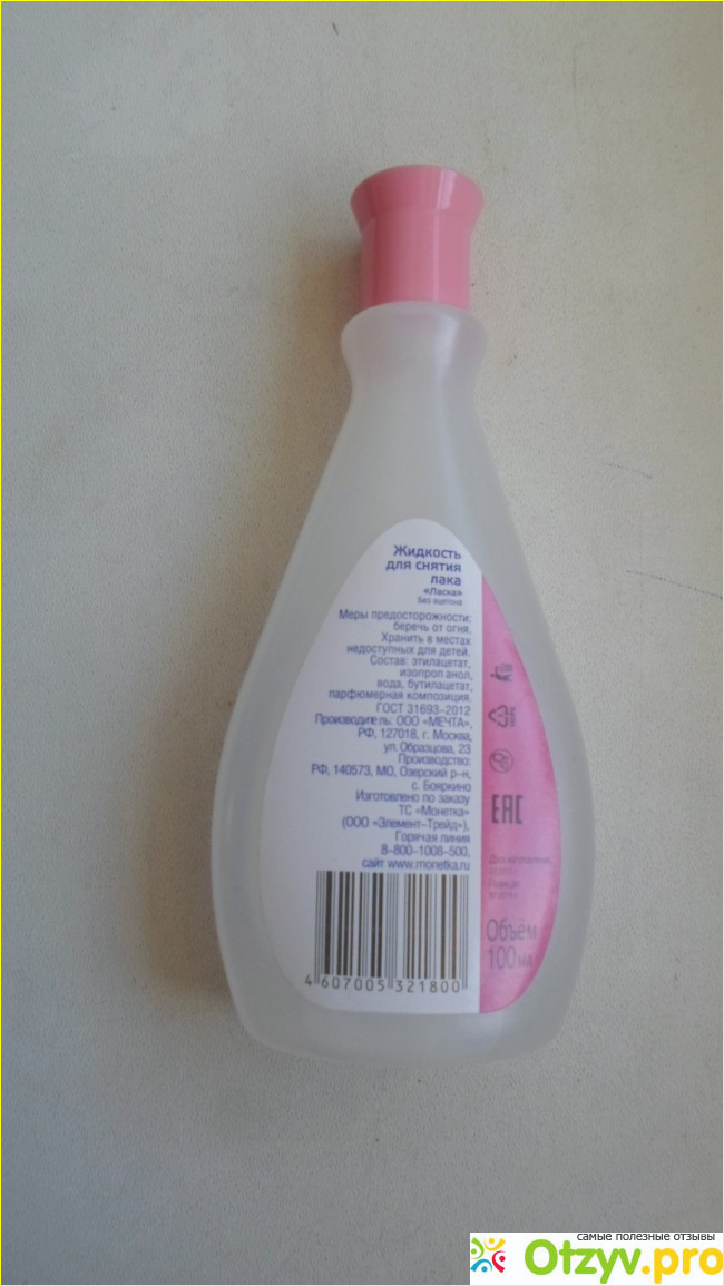 Мне нравится эта жидкость для снятия лака и в моей косметичке теперь постоянно имеется такой приятный и хороший растворитель лака для ногтей. Расфасована жидкость для снятия лака с ногтей без ацетона Nal Polish Remover "Мечта" в полиэтиленовый полупрозрачный флакон объёмом 100 мл. Простая винтовая пробка закрывает носик дозатор распределяющий раствор. Изготовлено по заказу ТС Монетка. Производитель: ООО "Мечта", Россия, г. Москва.