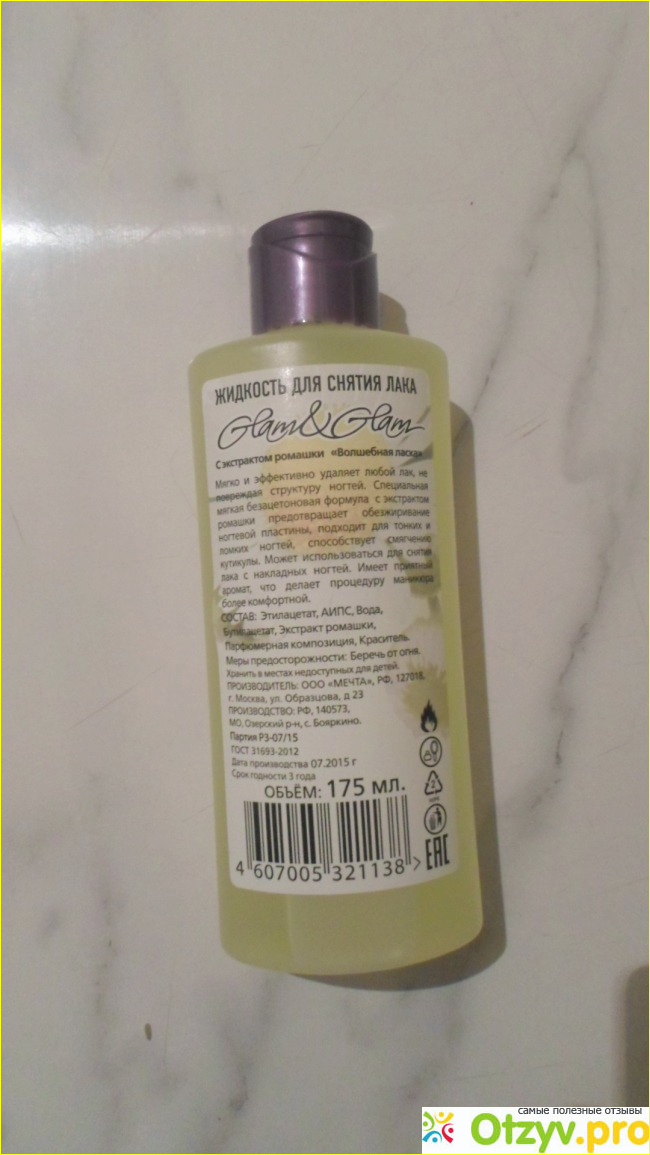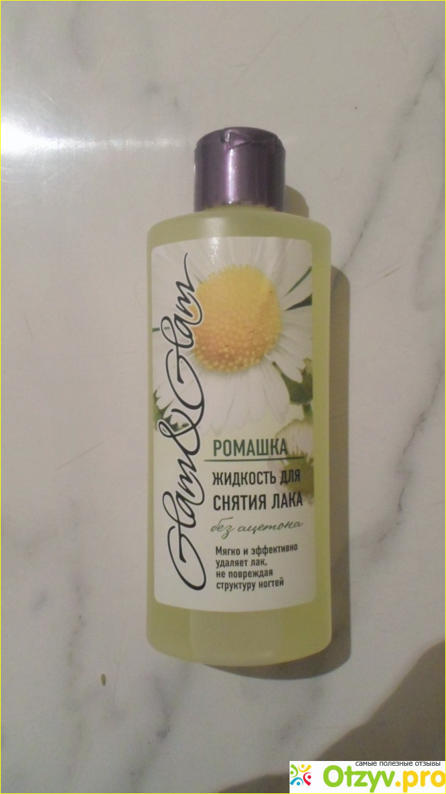Отличное парфюмерно косметическое средство не имеющее ацетона бережно и мягко удаляет очень сложные составы лаков. Защищая и не повреждая структуру самих ногтевых платин. Замечательная белоснежная ромашка привлекла моё внимание и я очень довольна этим раствором. Я так долго искала такую жидкость для снятия лака и столько мучилась снимая агрессивными растворами повреждающими мои ногти, что отчаялась найти именно такой мощный и отличный препарат.