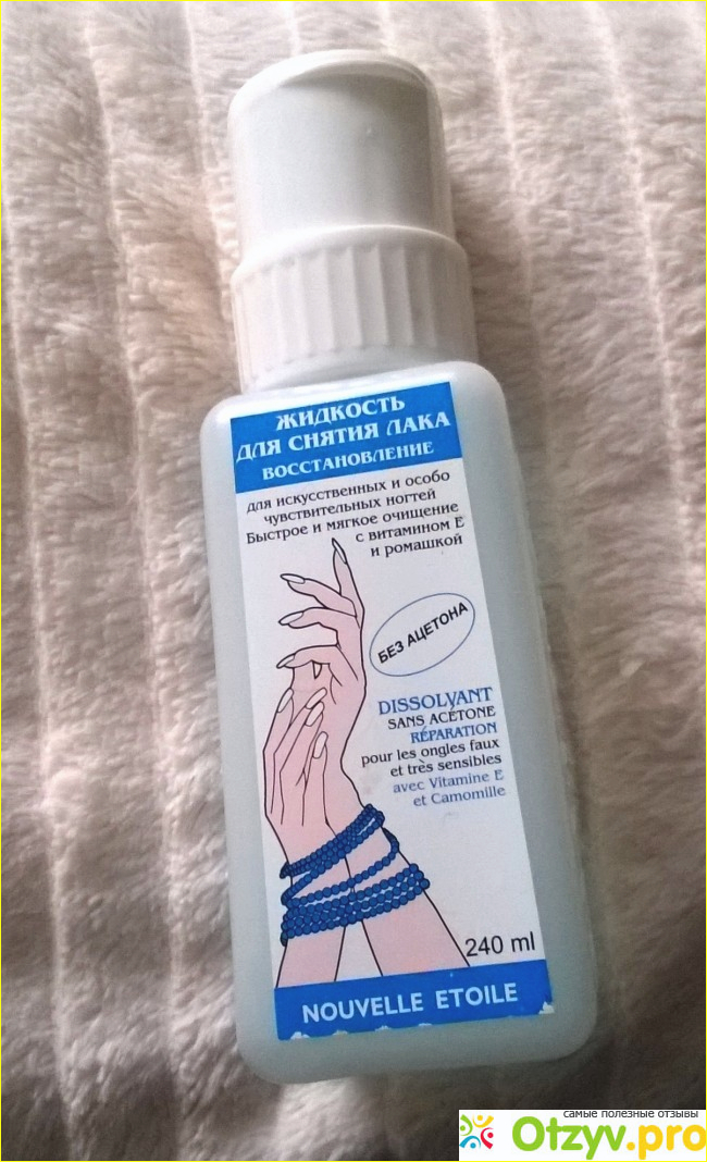Жидкость для снятия лака ВОССТАНОВЛЕНИЕ от Nouvelle etoile - приобрела впервые год назад, до этого использовала средства с ацетоном, с тех пор остановила свой выбор именно на нем.