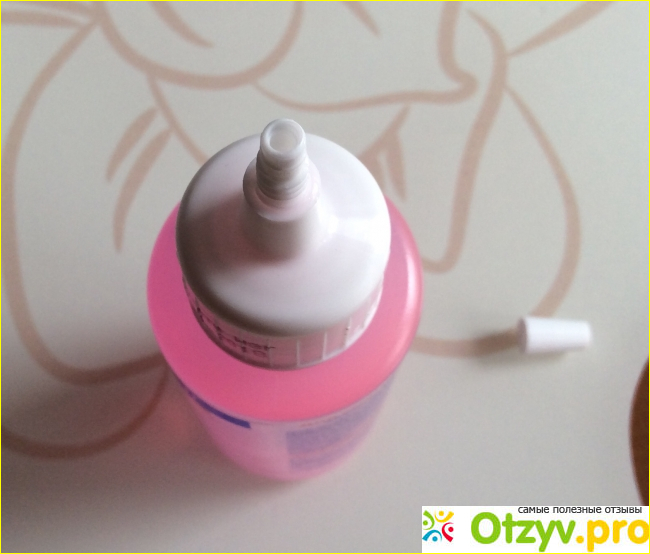 У упаковки есть удобнейший дозатор. Узкий носик, которым удобно будет добавить средство не снимая ватный диск и фольгу (если пользуетесь ей, а не специальными клипсами). Таким узким носиком удобно наносить и на ватный диск.