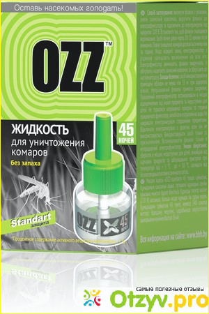 Лето как всегда балует нас обильным количеством насекомых, вот и купила, на пробу, емкость с жидкостью для уничтожения комаров "OZZ" из серии Standart, которой должно хватить на сорок пять ночей. Небольшой флакон, предназначенный для применения на фумигаторе, объемом в тридцать миллилитров, с прозрачной жидкостью внутри, но почему-то в жидкости плавает какой то осадок, как будто там некачественная кипяченая вода залита, а не средство от комаров.