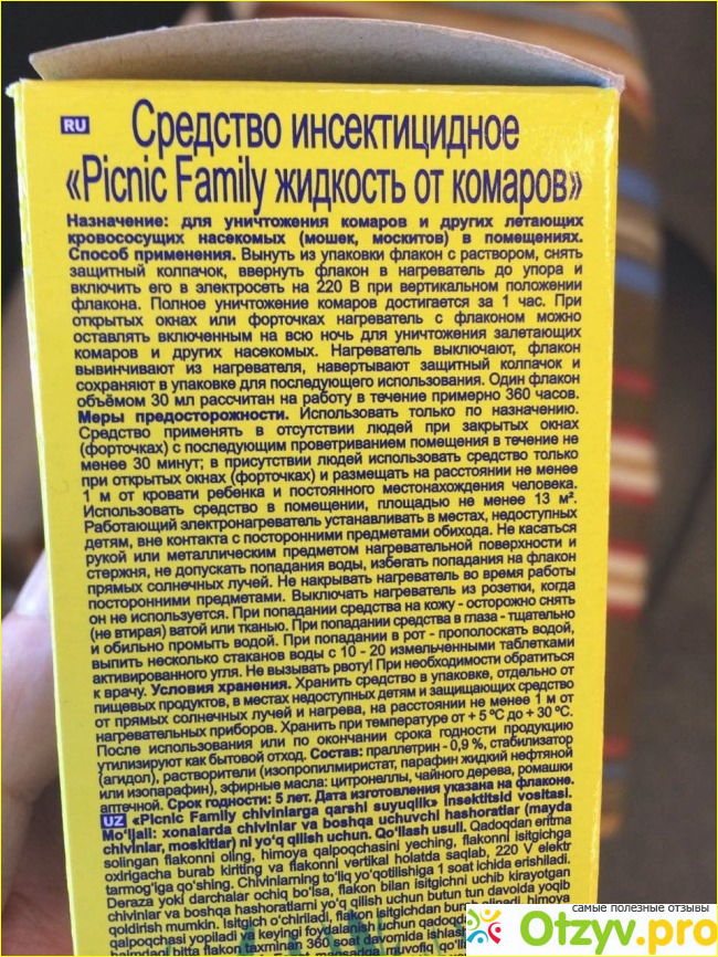 Раньше пользовалась жидкостью от других производителей, но в последние два года только PICNIC Family, он мне нравится больше всех. Им можно пользоваться всей семье, даже с маленькими детками. В состав входят экстракты ромашки, цитронеллы, чайного дерева. Такие травки не принесут вреда, тем более, что они не издают никакого запаха.