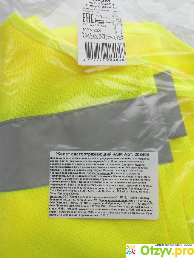 Жилете имеют различные размеры. Как правило, они салатового или ярко-оранжевого цвета с серыми полосками. Жилет не застегивается. Не забывайте надевать в ночное время.