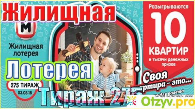 -зачеркивать числа в процессе просмотра утреннего шоу –Жилищной лотереи. Транслируется данная программа еженедельно по воскресеньям примерно в восемь-двадцать утра. Трансляция проходит на телеканале НТВ. Стоимость одного лотерейного билета, составляет ровно сто рублей.