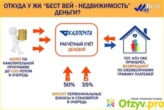 Компания «Бест-вея» активно предлагала квартиры не только в новых домах, но и на вторичном рынке. При этом возможность приобретения жилья имеется в любом регионе нашей страны. Как итог можно отметить наибольшим достоинством такого вида приобретение квартиры, что он более выгоден чем ипотека. В результате цена на квартиру будет не высокой. Но опять же, если верить калькулятору, которой располагается на сайте компании. Например, там можно было подсчитать, что, приобретая квартиру за 5 000 000 рублей конечная переплата составит около 400 000 р. Если брать подобную ипотеку в каком-нибудь банке, то в случае, если вы получите её под 10 % годовых, то в конечном итоге переплатите около 2 000 000 рублей и это не считая страховых взносов. Ещё одним достоинством жилищного кооператива является то, что там не обращают внимание на вашу кредитную историю. Главное, чтобы вы оплатили первоначальный взнос и потом регулярно оплачивали членские взносы.