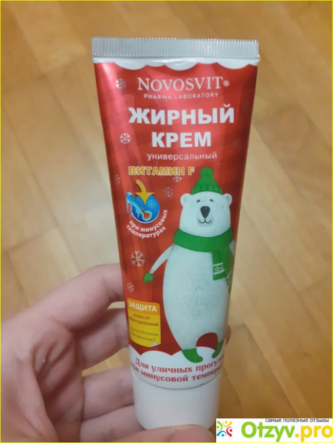 Искала жирный крем для лица и рук, который рекомендуют использовать зимой. Купила Novosvit жирный крем универсальный с витамином F. Яркая, красная туба с белым медвежонком, объемом 75 мл.