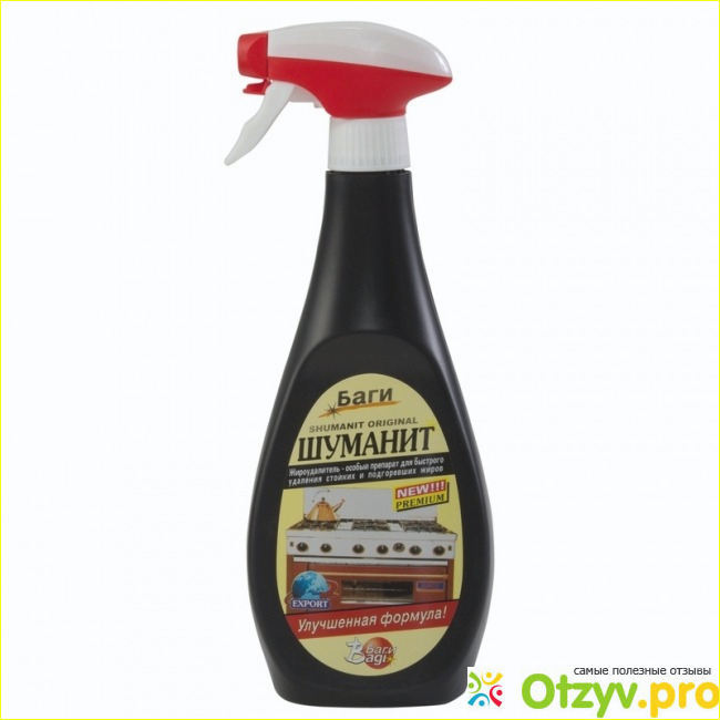 Ещё среди хозяек, является распространённым применение такого жироудалителя, который имеет название Шуманит. Стоит он на много дороже, чем выше описанное средство, имеет очень хорошее действие, но при этом немного уступает тому же средству. Благодаря всем составляющим в нём, он помогает устранить нагар со стеклянных поверхностей и эмалированных, при этом без труда очищает духовку, плиту, может применятся для обработки микроволновой печи. Минусом при его работе, является противный запах, которым приходится дышать. Обработку поверхностей стоит проводить в перчатках, при этом ещё помещение должно хорошо проветриваться. Следить стоит за тем, чтобы средство никаким образом не попало на глаза, кожу. Конечно же его действие проявляется благодаря щелочи, в немаленькой концентрации, плюс входят поверхностно-активные вещества, растворители, а также вспомогательные компоненты, ведь именно они стабилизируют и усиливают его прямое воздействие.