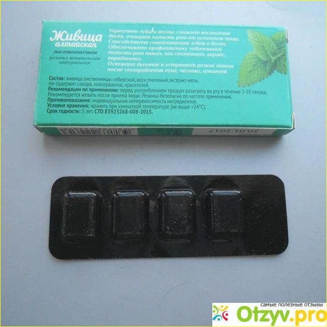 Чтобы вылечить живицей воспаление десен, стоматит и другие заболевание полости рта, надо хотя бы дней 5 по 3 такие темненькие жевательные резинки усердно жевать, а в дальнейшем для гигиены и здоровья можно перейти на однократный прием. Но мой организм сам регулировал частоту приема. Сначала он просто требовал новую жевачку, я даже испугалась, не возникла ли у меня зависимость, но с каждым днем потребность стала все меньше и меньше, а через неделю, если честно, я даже смотреть на нее не могла. При этом кровоточивость десен прошла, вот уже почти месяц я не замечаю крови при чистки зубов, и меня это радует. Если снова возникнет такая проблема, я в первую очередь буду решать ее с помощью Живицы алтайской лиственничной.