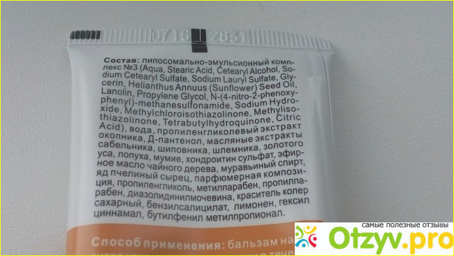 Весь состав и не перечислишь, мне понравилось в составе конечно присутствие масляных экстрактов сабельника, шиповника, золотого уса, лопуха, мумие, а все остальное, на мой взгляд просто набор каких то букв, что было что написано, да побольше...