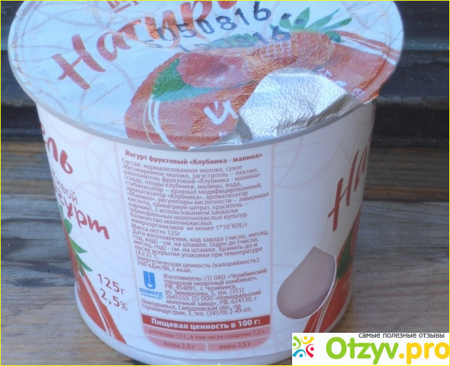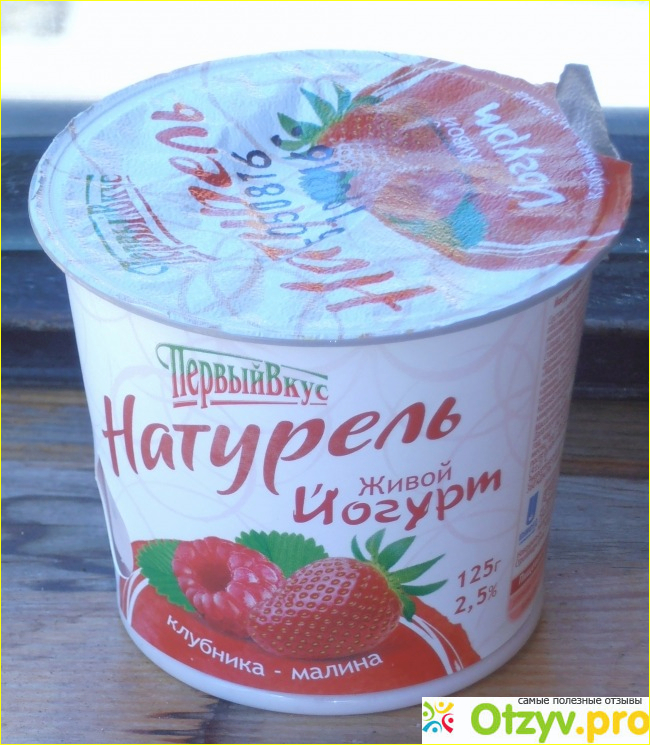 Что касается внешнего оформления данного йогурта - оно, в принципе, обычное. Йогурт Первый вкус "Натурель" с клубникой и малиной разливается в обычные пластиковые баночки, как и любые молочные продукты - это белая баночка, сделанная из тонкого пластика, но тут еще есть картонная этикетка - это что-то новое, обычно либо наклейки клеят на баночки, либо на саму баночку наносят рисунки и тексты, а тут картон, причем такой основательный, а вот уже на нем нанесено все то, что интересует покупателя.