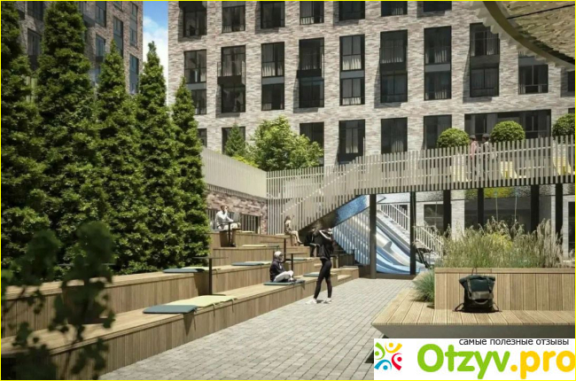 Что мне очень понравилось в этом комплексе, это то, что тут внутри двора машины не ездят. Двор полностью закрыт и он полностью безопасен, имеется видеонаблюдение. Это все очень важно, особенно, когда есть маленькие дети. Ведь они всегда любят играть и бегать, при этом, они не задумываются, куда бегут. В таких случаях часто наличие машин во дворах может быть опасным. Красивый ландшафтный дизайн внутри двора с ухоженными зонами, среди которых приятно прогуливаться. Перепад высот в дизайне двора будет составлять 3 м. А еще сам двор имеет два уровня.