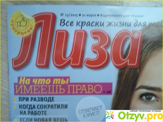 Уже давольно давно, мне нравится журнал "Лиза", он меня привлекает тем, что там есть много полезной информации необходимой для каждой семейной женщины. Со страниц журнала можно узнать о всех новостях общественной жизни столицы, о событиях из жизни звёзд шоу-бизнеса, чьи благородные поступки иногда вызывают восхищение простых людей. Реклама от известных брендов, помогает познакомиться с новым ассортиментом их продукции, особенно восхищает торговый дом "Снежная королева", чьи модные направления в одежде, особенно желанны для гламурных дам.