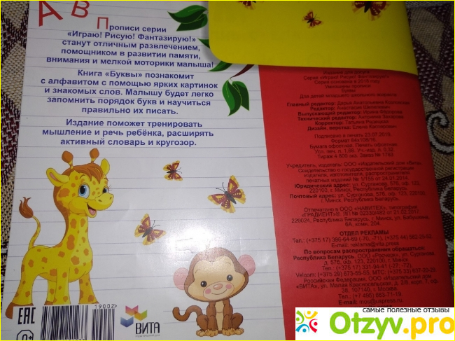 С обратной стороны издания присутствует необходимая для покупателей информация как о самой книжечке, так и об издательстве, в котором данная пропись была выпущена в печать.