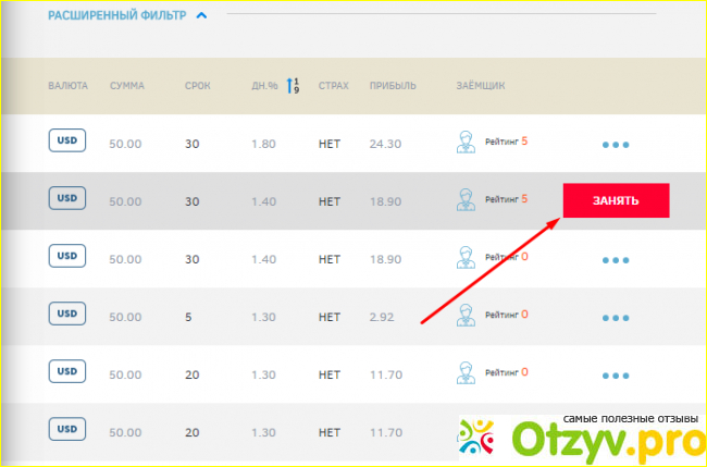 Если вы хотите выгодные для себя условия, вы конечно можете поставить максимальный процент, но в таком случае неизвестно, сколько времени пройдет, чтобы на вашу заявку кто-нибудь "клюнул". Если вы никуда не торопитесь и готовы ждать, с учетом того, что у вас есть достаточный баланс, то вы можете поставить максимальную сумму процента, то есть 2% в сутки и ждать, пока кто-то захочет воспользоваться вашим предложением...