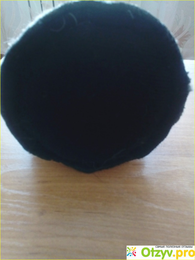 Таким образом, по кругу пришито несколько десятков тоненьких полосок шкурки зверька. Верхняя круглая часть шапки выполнена из плотной ткани бархатистого вида, чёрного цвета.