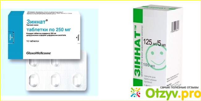 Таблетки зиннат имеют овальную форму, двояковыпуклые, белого цвета, возможно незначительное желтоватые окрашивание. Разные дозировки препарата имеют соответственно равные маркировки на таблетке. Гранулированная формула препарата представляет собой крупинки, которые имеют неправильную форму, и разный размер, однако размер каждой крупинке не может превышать 3 миллиметра. Крупинки белого цвета. При разведении водой они формируют суспензию, которая окрашена в белый, или немного желтоватый цвет, что является нормальным явлением. Для суспензии характерен незначительный фруктовый запах.