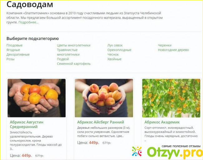Сейчас расскажу о своем опыте работы со Златпитомником, а также о том, почему я данный интернет-магазин не советую. В марте этого года я решила заказать у них саженцы плодовых деревьев в подарок своим родителям на дачу.