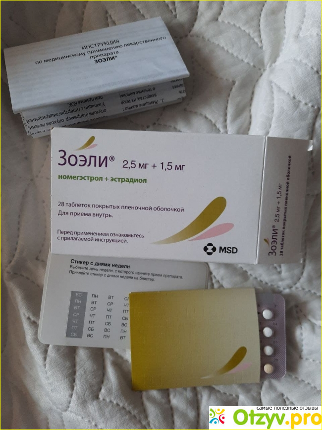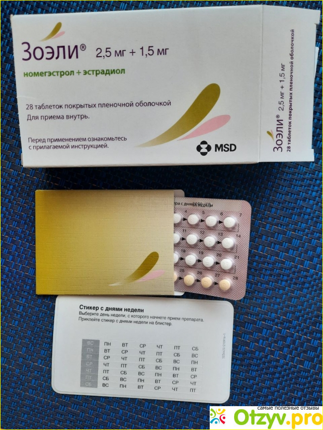 Зоэли – это название фармакологического препарата, относящегося к группе гормональных контрацептивных средств, в котором содержится эстрогеновый и гестагеновый компонент. Активными соединениями препарата являются номегэстрола ацетат (содержится в одной таблетке 2,5 миллиграмма и эстрадиола гемигидрат (1,55 миллиграмма).
