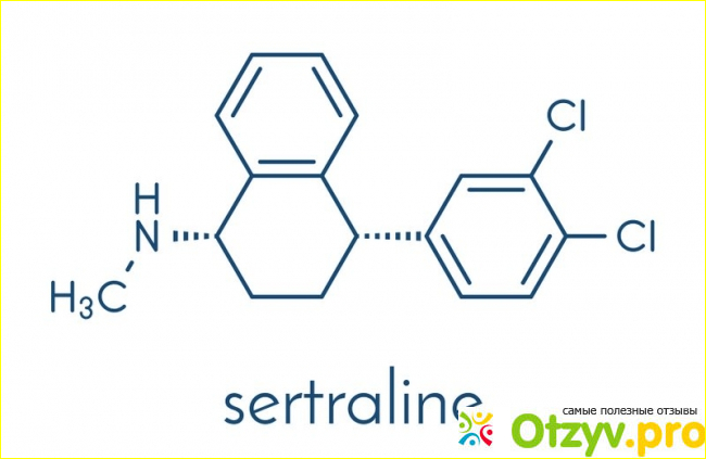 Основным активным действующим веществом препарата является сертралин в форме гидрохлорида. Дополнительно, кроме основного, имеются вспомогательные вещества для наилучшего растворения и усвоения лекарственного средства в условиях желудочно-кишечного тракта: