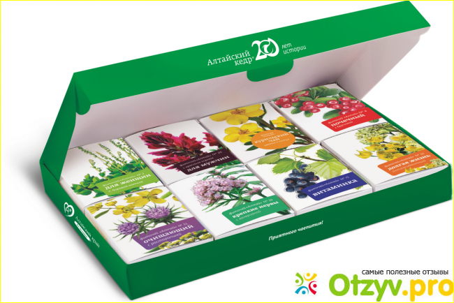 P.S Я всем советую, в качестве ознакомления, приобрести чайные напитки из серии:"Золотая коллекция Алтая", или "Алтайский кедр", они имеют почти одинаковый ассортимент, который вас никогда не разочарует, и поможет решить проблемы со здоровьем.