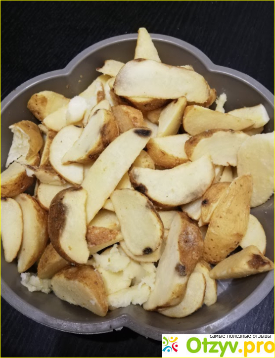 Картошка с черными пятнами! Развалилась, совершенно неаппетитные куски. Даже обжаривать повторно бесполезно. Ну, это же нельзя есть! Глазки не вырезаны, картошку, возможно, даже не помыли! Как так? Остались без ужина. Картофель пришлось выбросить. Возмущена. Совершенно безответственное отношение. Хотелось бы спросить, а почему у вас там написано; «Для особых поводов»? Мне вот эту гадость на стол гостям поставить? Нет уж, извините. Сейчас в продаже таких полуфабрикатов уйма. Надо же как-то стараться! Зачем запекать грязную, полугнилую картошку? Никому не советую. Голодными оставите и себя, и гостей. Лучше немного переплатить, и купить хороший картофель.