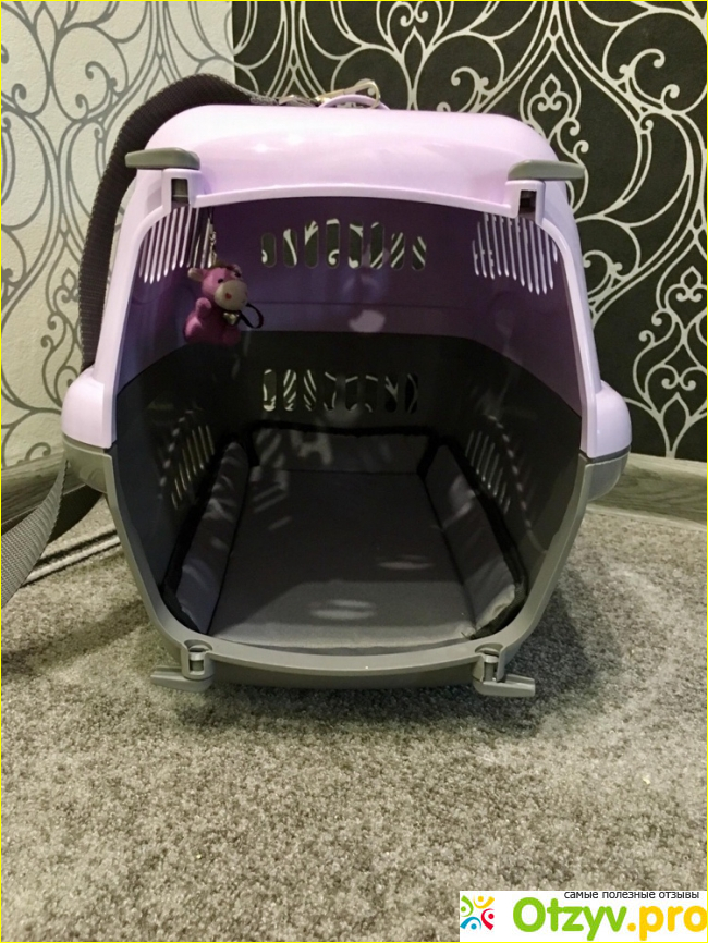 Мой выбор был в пользу переноски с ковриком и ремнем от Zooexpress. Размерные параметры 48*32*32 см. Производитель предлагает три цветовых варианта на выбор. Приобретала данное изделие по акции за 1900 рублей. Переноска выполнена из прочного пластика, может использоваться для кошек, и мелких собак. На корпусе есть металлическая дверца с сеточкой, через которую поступает воздух. Также в комплекте есть коврик, на котором кошка может комфортно лежать, а также ремень для того, чтобы переносить на плече, руках.
