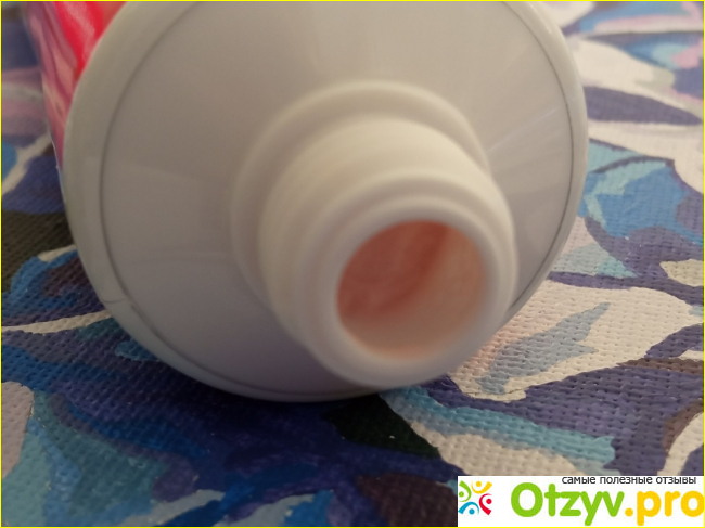 Зубная паста Colgate гранат имеет приятно розовый цвет, непрозрачная и однородная, без вкраплений.