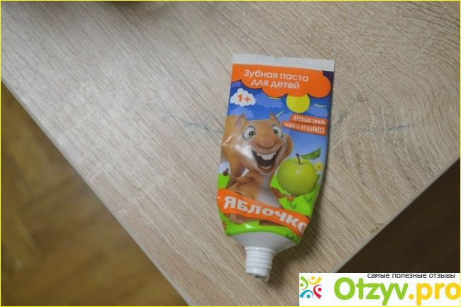 1. Яркий рисунок на тюбике - деткам очень нравится эта улыбающаяся белочка с огромным яблоком.. или не белочка..?!?))