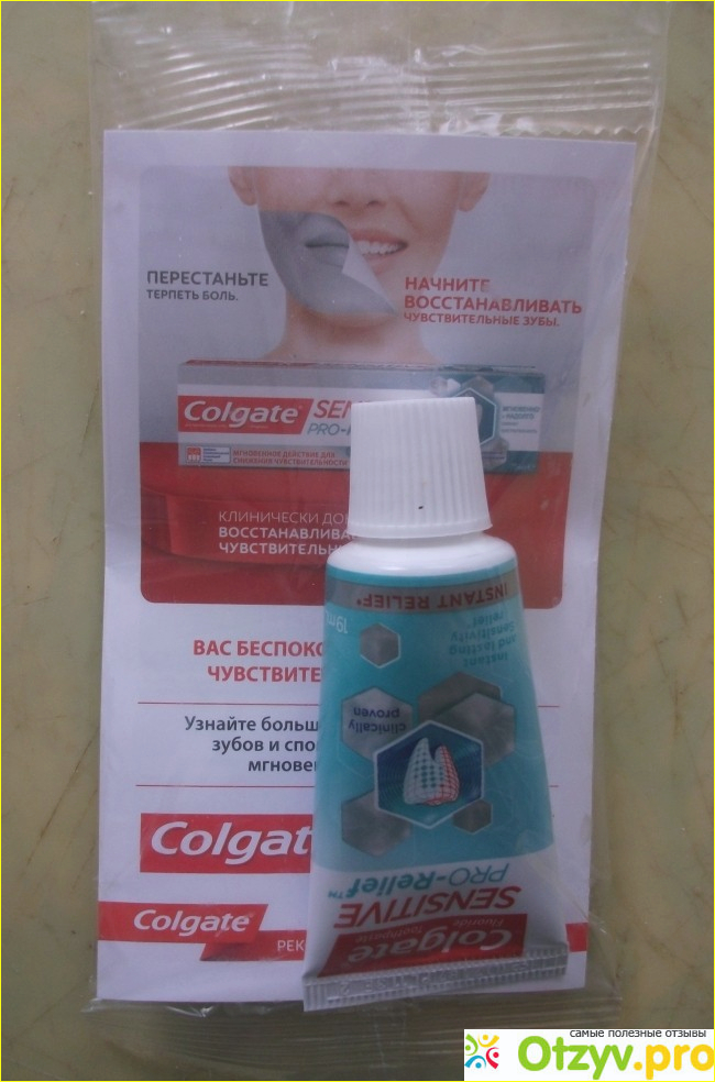 Пришлось идти на консультацию к стоматологу. Он мне посоветовал, естественно, бросать курение и воспользоваться пастой "Колгейт Сенситив Про Релиф" и дал пробник этой пасты. Проверив в работе пасту и убедившись в её эффективности, я приобрёл полноценный экземпляр.