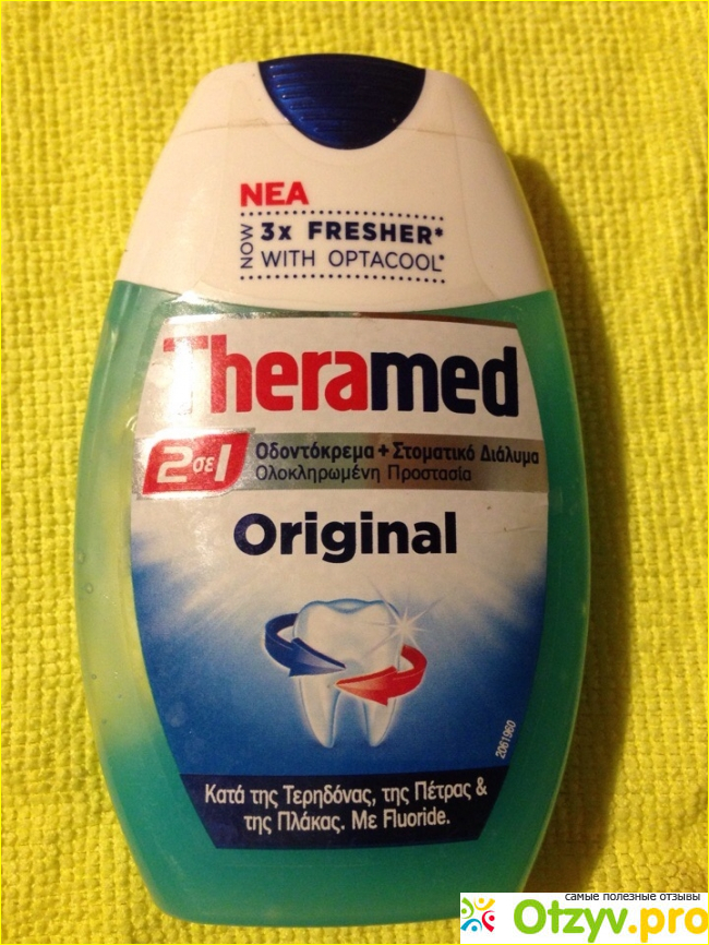 Theramed Original я купила после того, как в поездке обычная паста из тюбика выдавилась на одежду и пришлось перестирывать белье. По дороге в магазин я хотела купить именно удобную емкость, которая будет надежно закрываться. Рассмотрев большой ассортимент товаров я выбрала пасту немецкого производителя Schwarzkopf & Henkel и не прогадала.