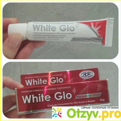 White Glo Whitening это зубная паста, которая очень хорошо очищает зубы. Сама зубная паста содержит соответствующие ингредиенты для чистки зубов и ежедневного удаления пятен на поверхности. Препаративная обогащенная фтором зубная паста предлагает максимальный уход. Его специальная рецептура Extra Strength облегчает обесцвечивание и пожелтение на зубной эмали, которая часто вызывается пищей и напитками с сильной окраской.