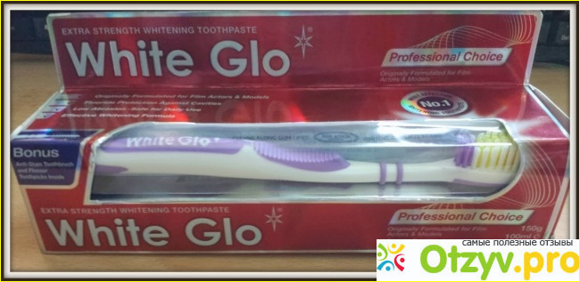 Белая зубная паста White Glo - это продукт для отбеливания зубов, который является дополнительной прочной отбеливающей зубной пастой, которая была первоначально создана для актеров и моделей фильмов, так как у них всегда должны быть красивые и сверкающие зубы. Упаковка для продукта Professional Choice красная с глянцевым блеском. На внешней упаковке можно увидеть, что вместе с зубной пастой идет еще и бесплатная зубная щетка.